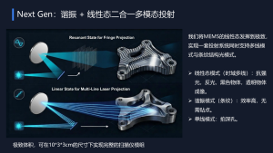 本次发布的核心创新,在于将MEMS不同工作态(线性态与谐振态)统一到同一投射系统中,实现真正意义上的多模态融合